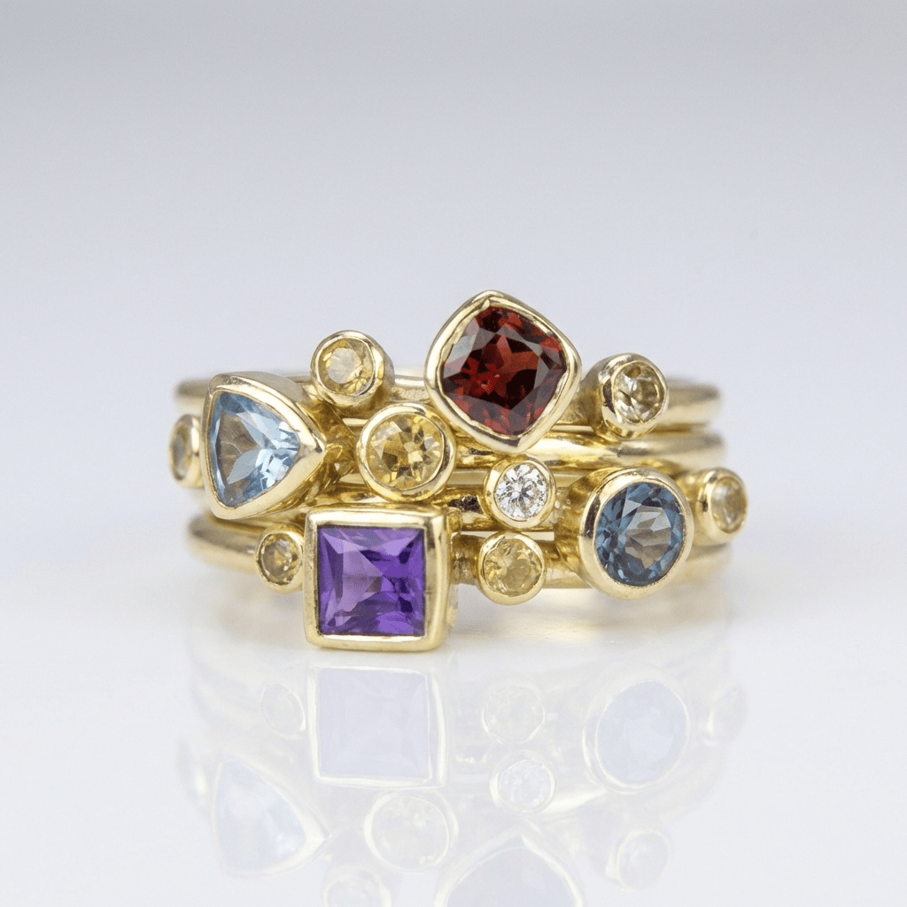 COLORFUL GEMSTONE GOLD STACKING RING SET