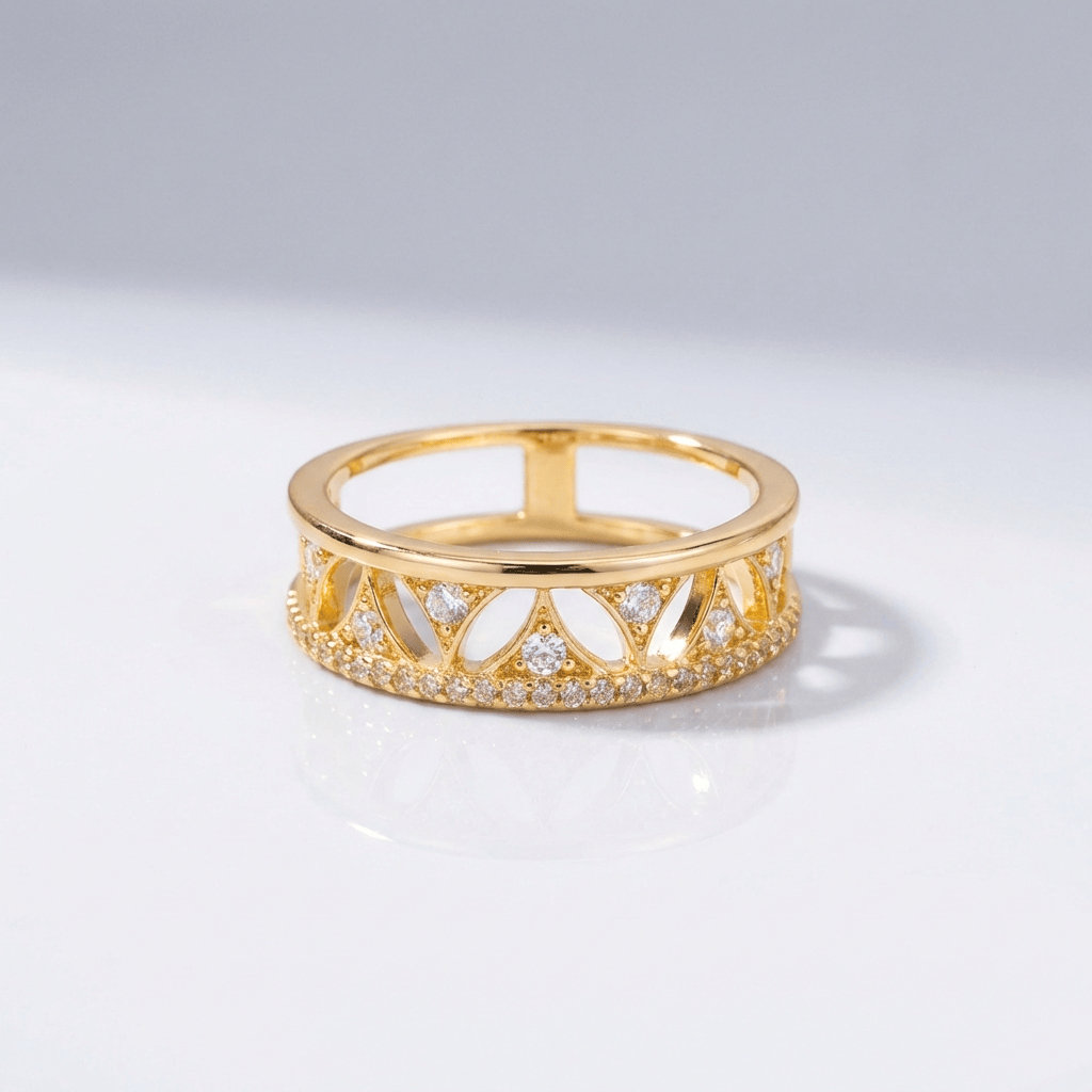 CRYSTAL CROWN GOLD BAND RING - (ADJUSTABLE)