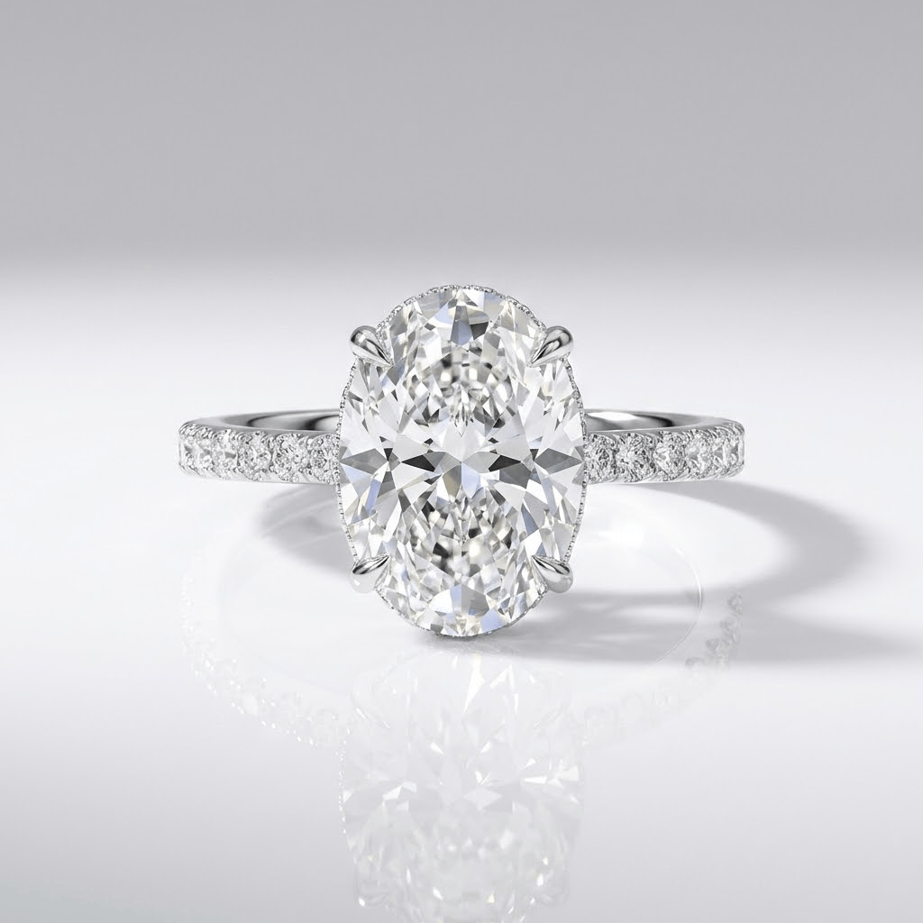 OVAL DIAMOND SILVER ELEGANT RING